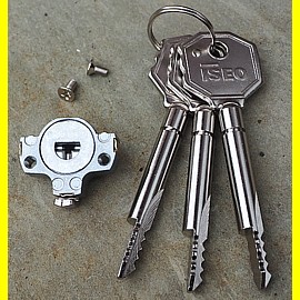 Einbausicherung Gera mit 3 Kreuzbart - Stahlschlüssel Gesamtlänge ca. 81 mm